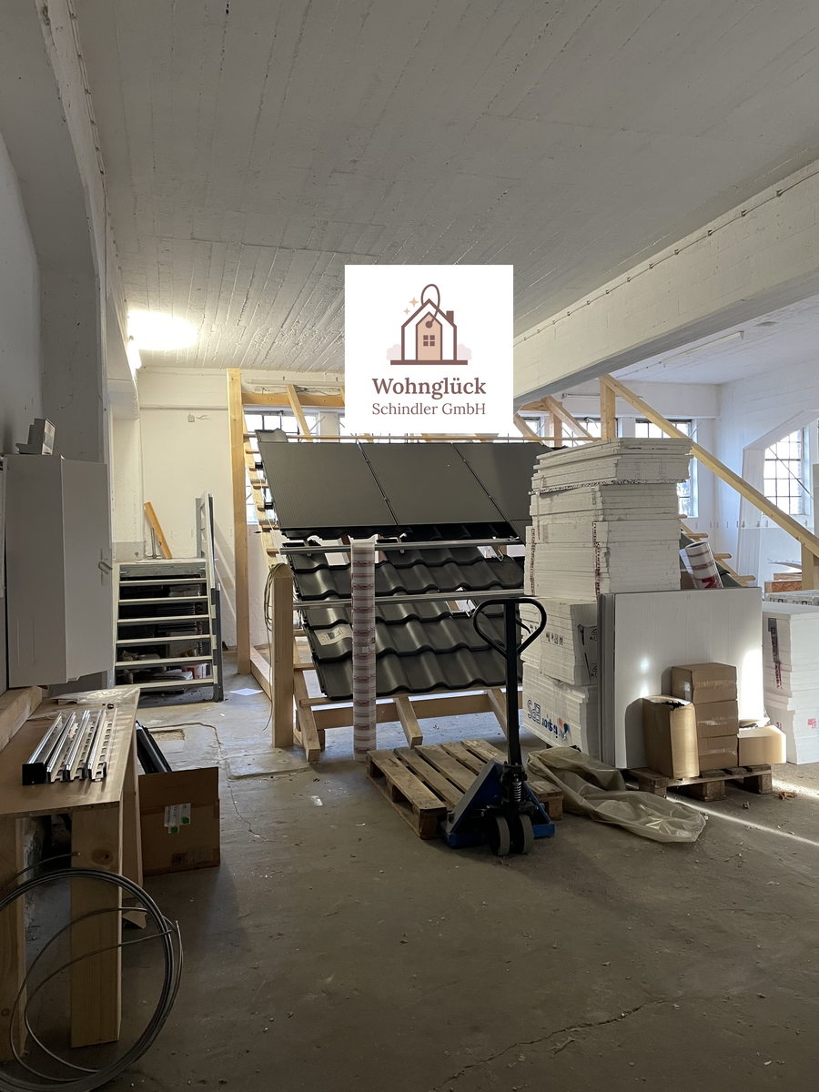 Die Gewerbehalle bietet dank zahlreicher Fenster sehr viel Licht und vor allem auch viel Charme. Die Halle hat ein elektrisches Tor, sodass Anlieferungen problemlos möglich sind. In der Halle befindet sich ein Gemeinschaftsraum und ein Badezimmer, sodass auch Mitarbeiter die Halle für unterschiedliche Zwecke nutzen können. Zusätzlich gehören zwei Stellplätze zu der Halle, die im Mietpreis enthalten sind.